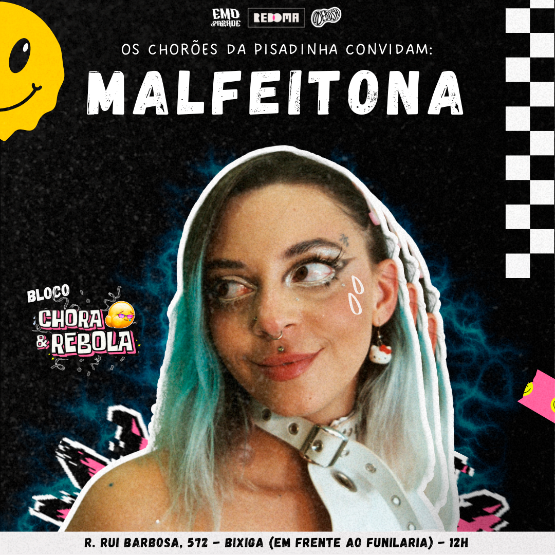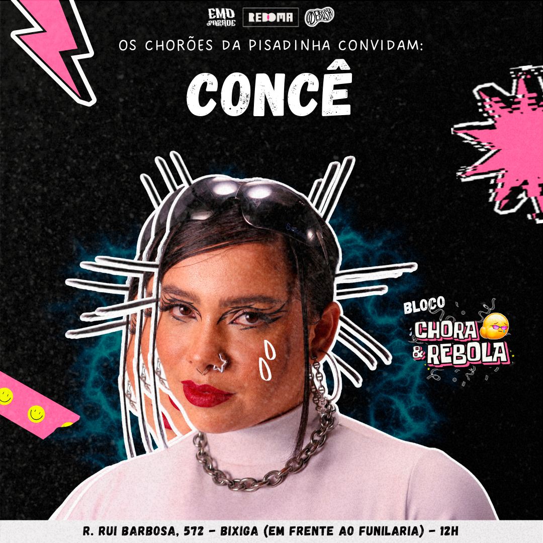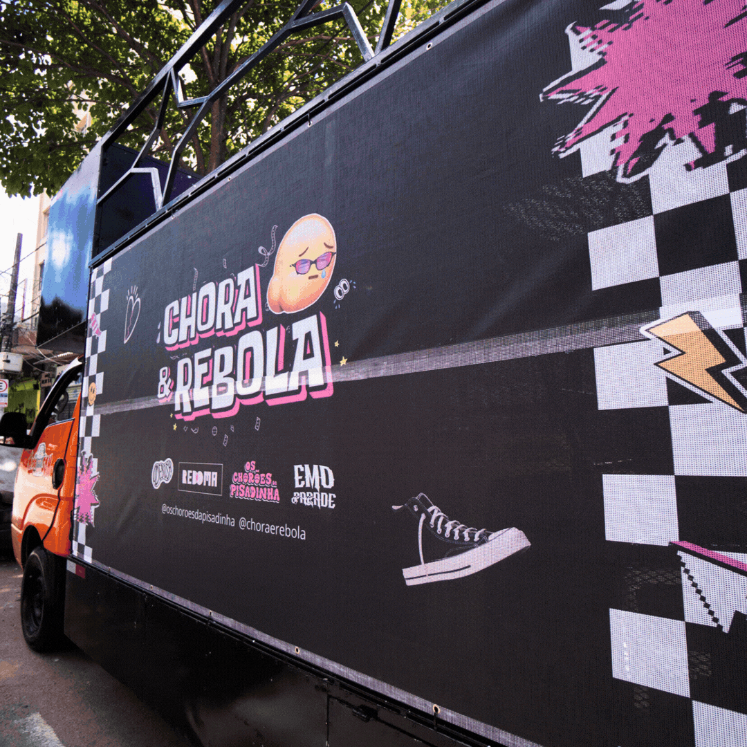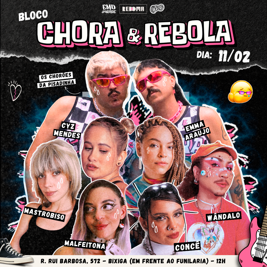 O objetivo foi criar uma identidade visual para o primeiro bloco de carnaval do grupo, que representasse sua energia, personalidade e proposta cultural, unificando a comunicação do projeto musical e do evento. Foi desenvolvido um visual forte e reconhecível, misturando o emo com o piseiro criado especialmente pelo grupo Os Chorões da Pisadinha.